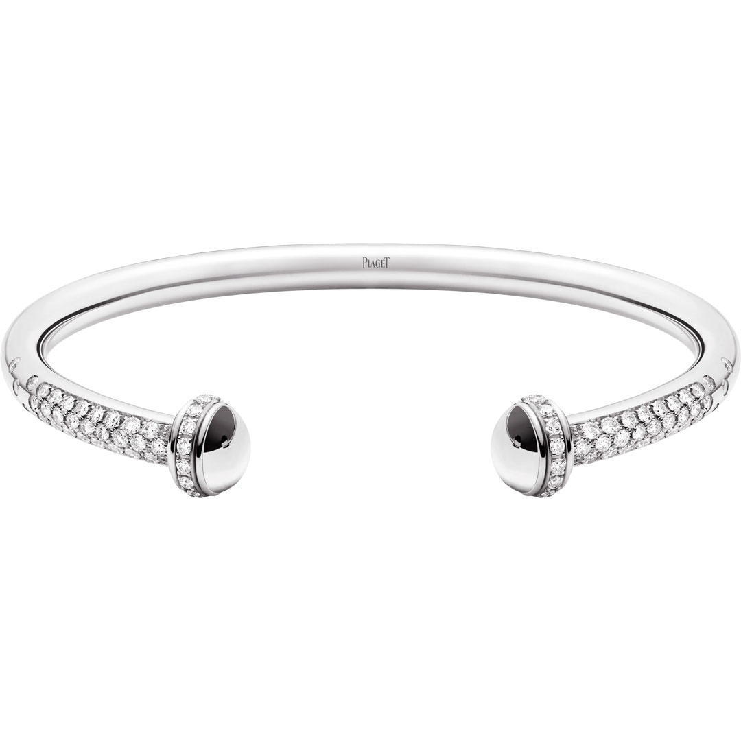 من بين التصاميم الأيقونية التي تجسد هذا الأسلوب، يبرز سوار Possession Open من دار بياجيه Piaget. هذا السوار، الذي يعتبر رمزًا للأناقة الخالدة، يحتفظ بجاذبيته مع مرور الزمن، ويتميز بمرونته في التنسيق مع أساور أخرى لتحقيق صيحة التكديس الرائجة. سوار Possession Open مزدان بـ 90 ماسة بوزن إجمالي يبلغ حوالي 1.00 قيراط، مما يضفي عليه بريقًا خاصًا يجعله قطعة فاخرة لا غنى عنها في مجموعة مجوهراتك.