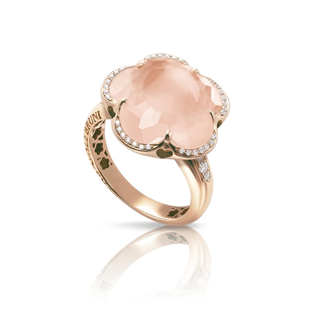 أضيفي لمسة طبيعية رومانسية إلى مجوهراتك مع تصميم مستوحى من جمال الطبيعة. في خاتم Bon Ton من دار باسكال بروني Pasquale Bruni، يلتقي الذهب الوردي عيار 18 قيراطاً مع حجر كوارتز وردي كبير يتوسّط التصميم على شكل وردة، تحيط به أحجار الألماس بوزن 0.15 قيراط. يُعدّ هذا الخاتم خياراً مثالياً لمن تبحث عن إطلالة ناعمة وبسيطة في الوقت ذاته.