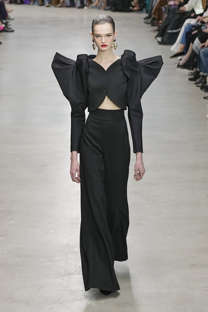 يتجه الخريف القادم نحو تألق البناطيل الـWide Leg بتصميمها ذي الخصر العالي والأرجل التي توسع بشكل تدريجي حتى الحافة، مما يشير إلى أنها ستكون الاختيار المفضل في الموسم. لوحظت هذه الصيحة في العديد من العروض، وتحت إشراف مصممين بارزين مثل كارولينا هيريرا Carolina Herrera. أبرزت إحدى عارضات الأخيرة هذا الاتجاه ببنطلون أسود أنيق مرتبط مع سترة Crop مطابقة تبرز بأكمامها الطويلة الملفتة عند الأكتاف. لقد كان التنسيق مع الحذاء الأسود والأقراط الذهبية العلى شكل قلب معجبًا بشكل خاص.