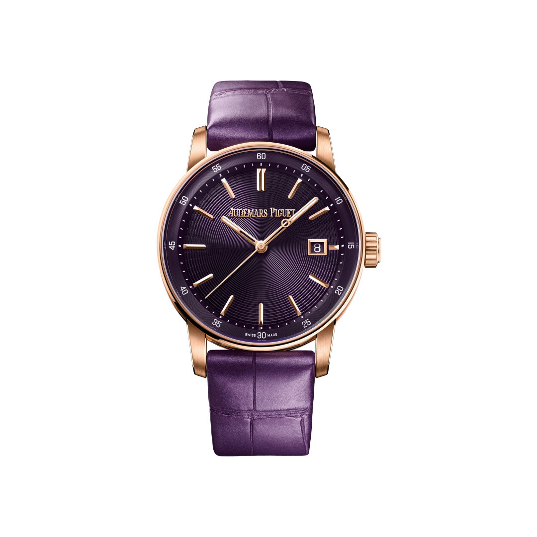 تجمع ساعة CODE 11.59 من أوديمار بيغيه (Audemars Piguet) بين الفخامة والعصرية، مقدمة قطعة فنية تأسر القلوب منذ الوهلة الأولى بفضل تصميمها الذي يجمع بين الذهب الوردي والحزام الأرجواني الساحر.
