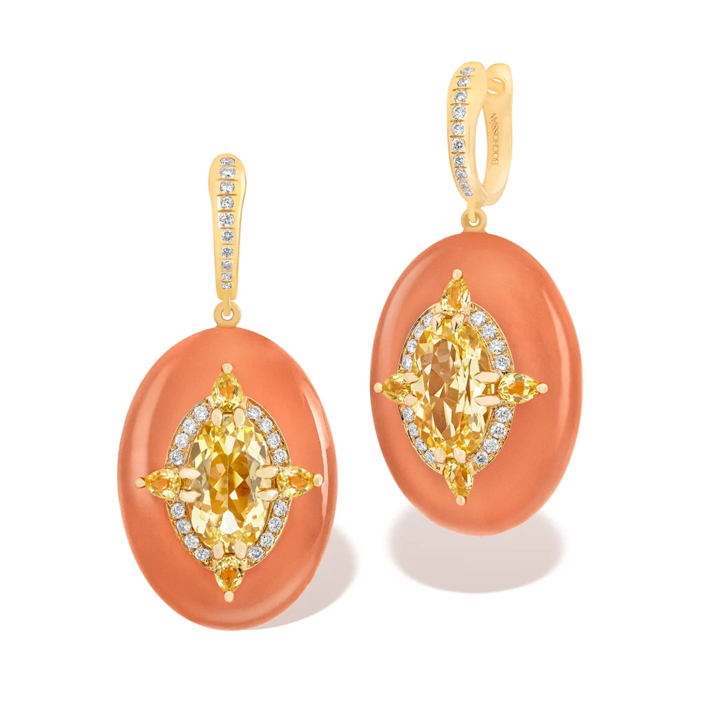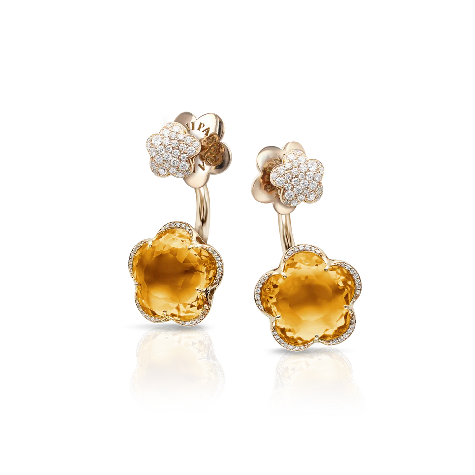 تتميز الأقراط المرصعة بالأحجار البرتقالية أو تلك التي تجمع بين البرتقالي والذهبي بأناقة فريدة، خاصة عندما تستلهم من الطبيعة مثل الشمس أو الزهور. أضيفي لمسة جديدة إلى إطلالتك مع أقراط Bon Ton Divine من Pasquale Bruni التي تجمع بين الرقة والبهجة. هذه الأقراط مصنوعة من الذهب الوردي عيار 18 قيراطًا، ومرصعة بألماس أبيض بوزن 0.58 قيراط، وتتوسطها زهرة من حجر السترين بحجم 14 مم. وبفضل تصميمها البسيط، يسهل تنسيقها مع مختلف إطلالاتك اليومية ذات الألوان المحايدة، ويمكنك ارتداؤها مع تسريحة شعر مرفوعة لإبراز جمالها.