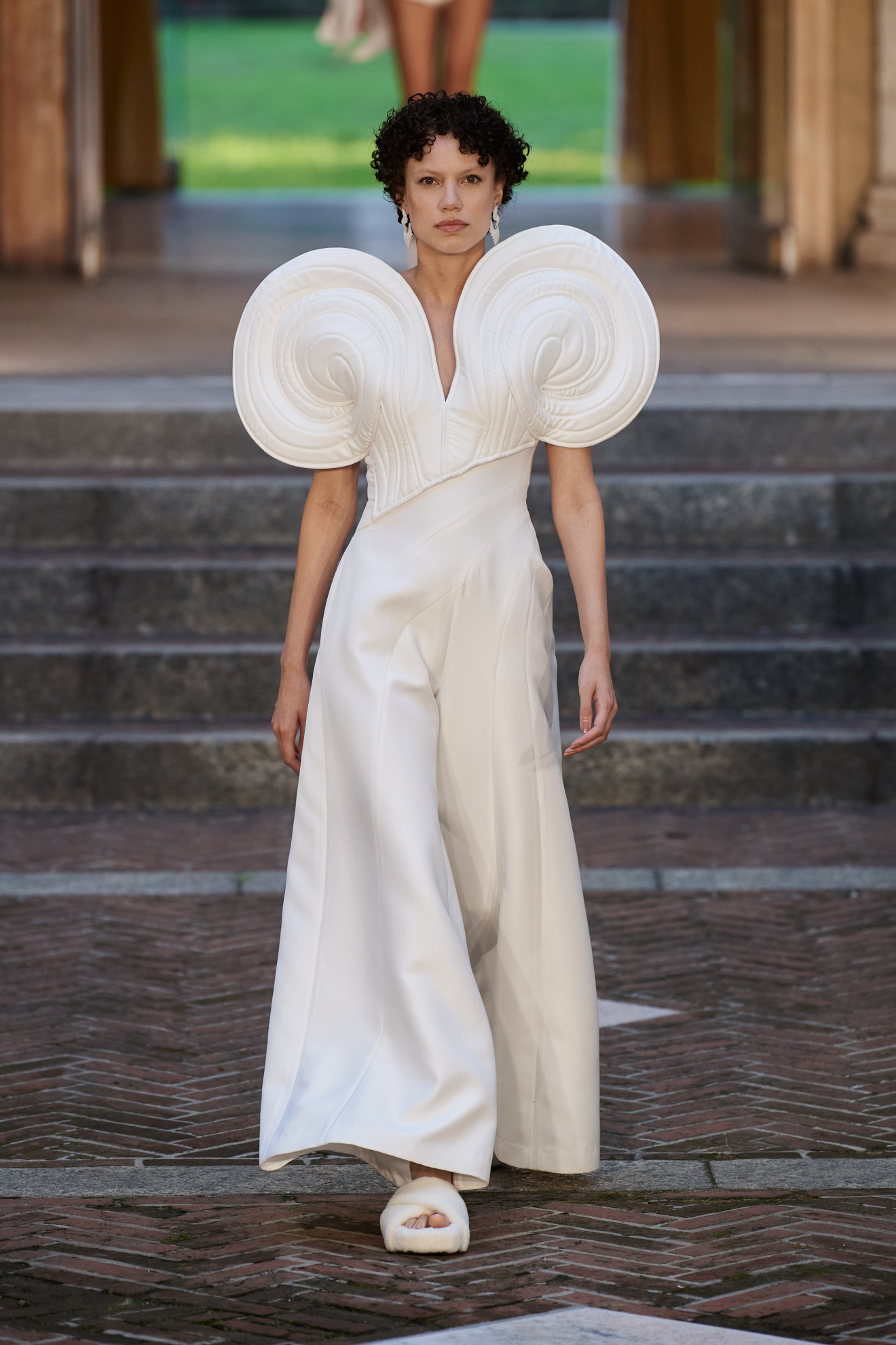 تسود صورة تقليدية لفساتين الزفاف في أذهاننا، لكن عام 2023 شهد تغييرات ملفتة مثل الجمبسوت الأبيض الحريري المزين بالرسوم، مع كاب ناعم يزين الأكتاف، الذي قدمته دار رودارتي Rodarte للعروس الحديثة. تم تنسيق هذا الزي مع باقة زفاف ضخمة باللون الأصفر، مكياج غوطي، وحذاء متموج بلون زهري لامع. يتوقع استمرار توجه الجمبسوت الأبيض في عام 2024، لكن بإضافات مثل حزام لتحديد الخصر وجيوب كبيرة، كما رأينا في تصاميم دار سان لوران لصيف 2024.