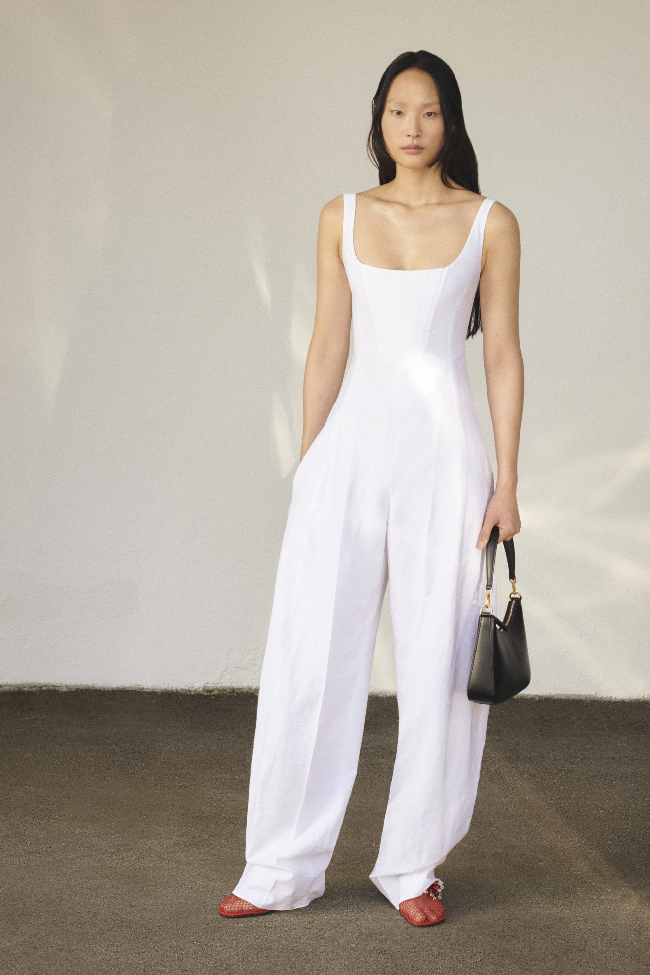 إذا كان الجزء العلوي من قوامك متناسقاً وجذاباً، يُنصح باختيار جمبسوت بتصميم أنثوي يتميز بقصة مربعة، مع سروال ذي ساقين واسعتين. يمكن تنسيقه مع حذاء شفاف مريح. للإكسسوار، اختاري حقيبة يد صغيرة من الجلد الأسود على شكل هلال. يُكمل هذا الأسلوب الأنيق بتسريحة شعر طبيعية ومكياج ناعم، معتمدة على تصاميم ستيلا مكارتني التي تتسم بالهدوء والأناقة.
