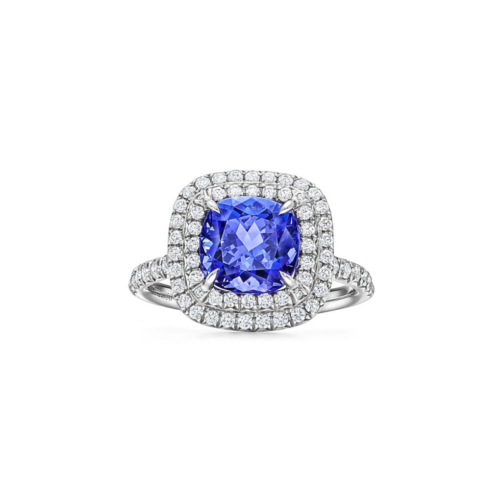 يتميّز خاتم Tiffany Soleste من Tiffany & Co بإشراق استثنائي، إذ صُنع من البلاتين ومرصّع بحجر تنزانيت مركزي تحيط به هالة من الألماس. تستلهم المجموعة اسمها من كلمة Sol التي تعني الشمس، في احتفاء دافئ بالطاقة والضوء. تصميمه يجعله خياراً مثالياً لإضافة لمسة لونية جريئة ضمن تنسيق الخواتم الماسية.