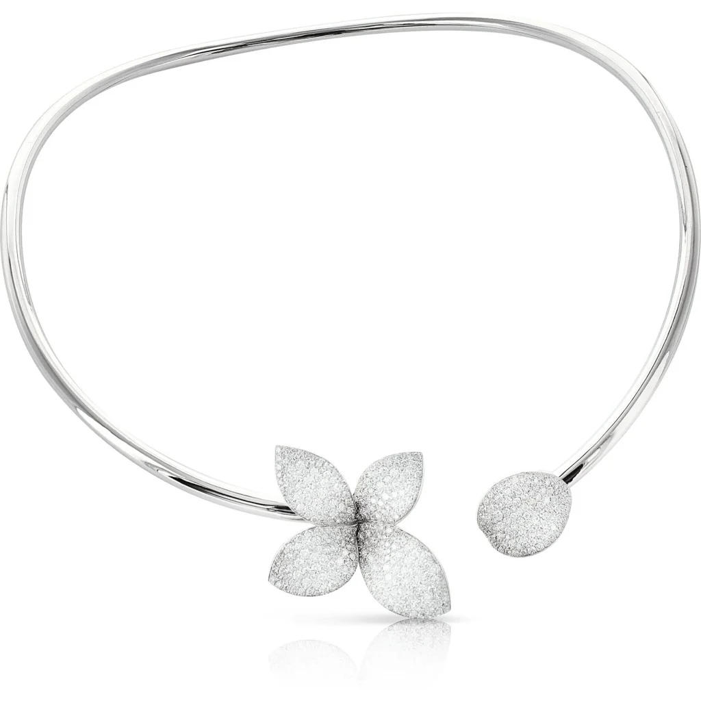 يجمع عقد Giardini Segreti من باسكال بروني Pasquale Bruni بين الفخامة والرومانسية، إذ ينتهي أحد طرفَيه بوردة ماسية، فيما ينتهي الطرف الآخر بورقة شجر ماسية أيضاً. وهو مصنوع من الذهب الأبيض عيار 18 قيراطاً، ومُرصّع بالألماس بوزن 4.49 قيراط.